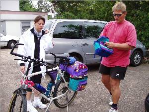 Unsere Mitradler sind Sophie und Sigi, diese Beiden sorgen für das ausgewogene Verhältnis 2:2. Zwei starke und zwei nicht ganz so starke Fahrer. Aber gemeinsam sind wir unschlagbar! 1.Tag: Aschaffenburg - Miltenberg 51,5Km Wir treffen uns am P+R Parkplatz in Idstein um 8°° Uhr. Die Frauen Kopfschmerz geplagt und mit etwas gedämpfter Stimmung, die Männer fit wie Turnschuhe! Wir starten über die A3 Richtung Aschaffenburg. Um 9°° Uhr erreichen wir unseren Startpunkt bei Bekannten, hier kann das Auto eine Woche parken. Dann wird alles auf die Velos geschnallt, die Fahrradständer im Auto verstaut und um 9:30 Uhr geht es los. Noch ein wenig gewöhnungsbedürftig mit dem ganzen Gepäck. Sophie und Sigi haben noch keine Tourenerfahrung und wir haben auch erst eine längere Radreise vor zwei Jahren gemacht.